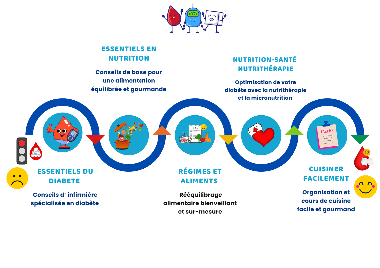 Les repas, savoureux et équilibrés, peuvent être partagés avec vos amis et votre famille 👨👩👧👦, et avec un peu d'organisation pour vos courses et en cuisine 🛒🍴, soigner son diabète devient un plaisir simple et accessible !😋🎯